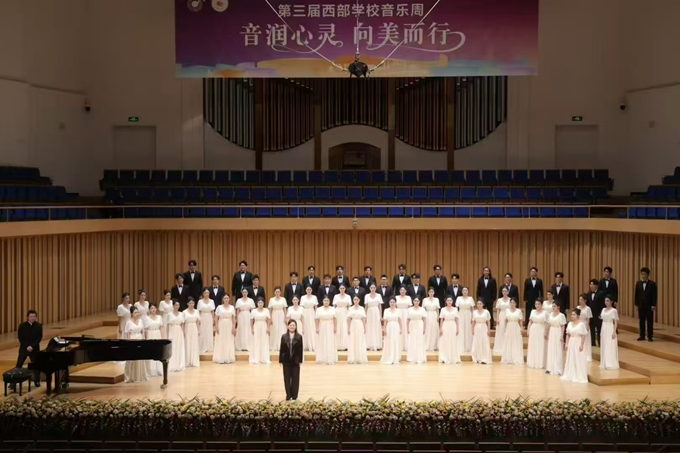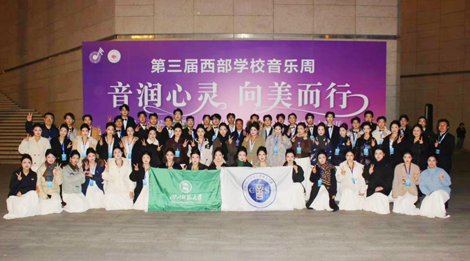 2025年11月24日至27日,由四川省教育厅、重庆市教育委员会、贵州省教育厅、云南省教育厅联合主办,四川音乐学院、武侯区人民政府共同承办,以“音润心灵・向美而行”为主题的第三届西部学校音乐周在成都城市音乐厅举行。四川师范大学音乐学院星空合唱团全程参加开幕式、正赛展演和闭幕式,合唱团师生的精彩展示赢得了现场观众和专家评委的一致好评,荣获大学生乙组(专业组)一等奖。