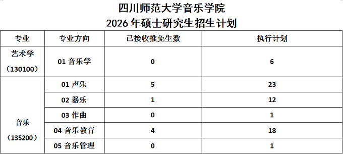 >>四川师范大学音乐学院 2026年硕士研究生招生计划