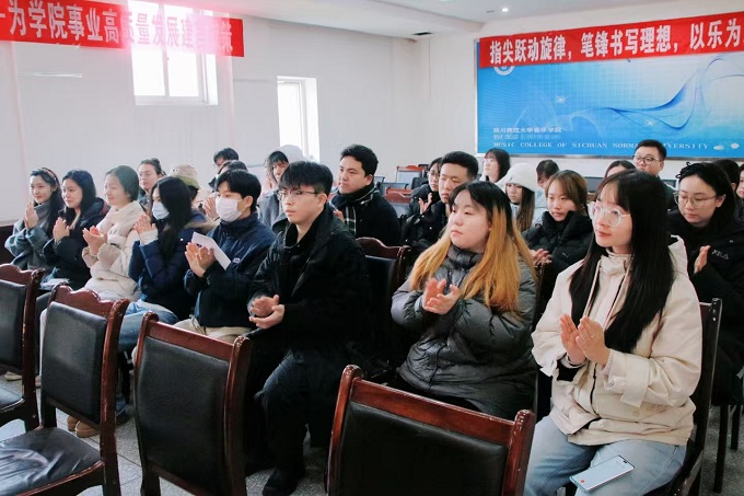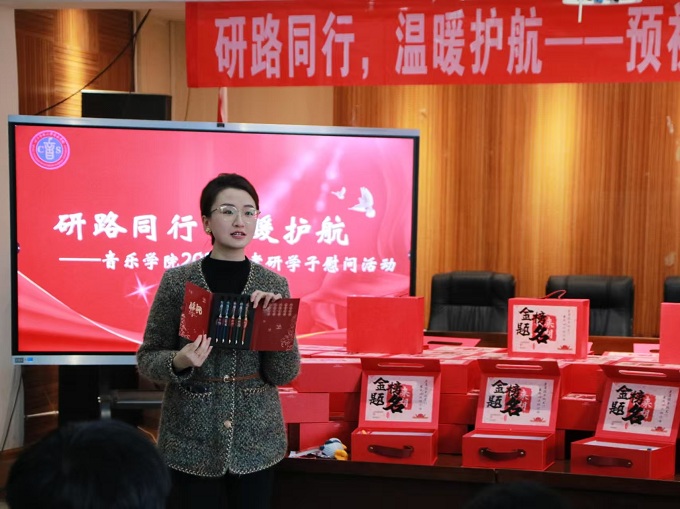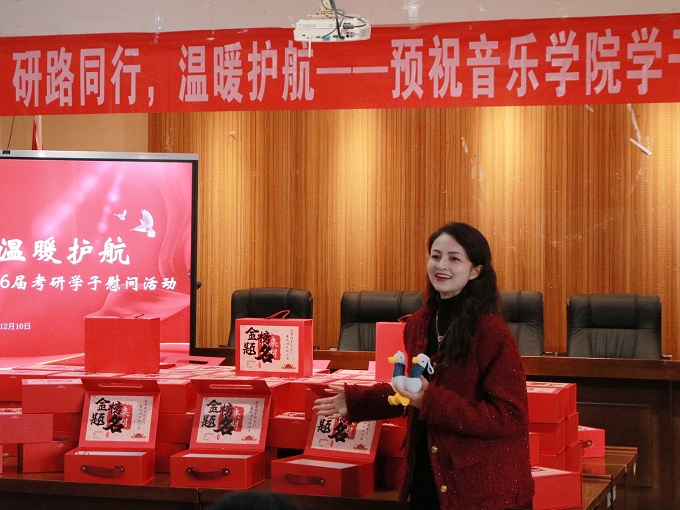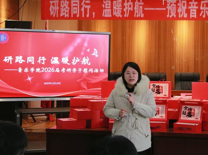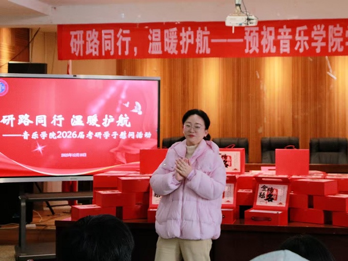 2025年12月10日上午,音乐学院502会议室内暖意氤氲、笑语盈堂,“研路同行 温暖护航”音乐学院2026届考研学子慰问活动温情启幕。音乐学院院长李亚梅、党委副书记谢琳、副院长李松兰、教务办公室主任熊昕若、2026届毕业生辅导员刘铮、纪佳旭来到现场,与即将参加2026届全国研究生招生考试、申请出国留学的学子共聚一堂,送上一份鼓励,再做一次叮咛。